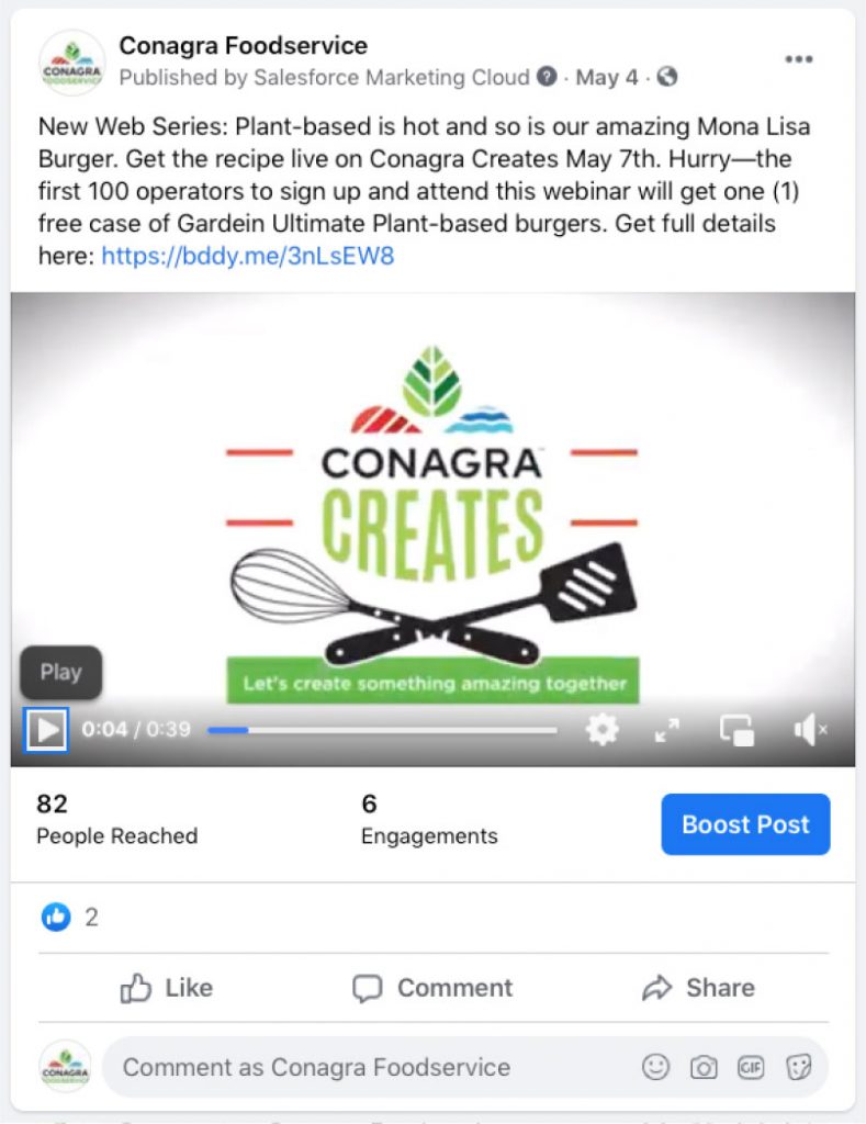The campaign: Boomm developed a true turnkey approach for the Conagra Foodservice social media program, including strategy, design, writing and video production. This approach created a cohesive and compelling social experience that fit the brand perfectly. It also ensured exclusivity—operators could not find this content anywhere else.