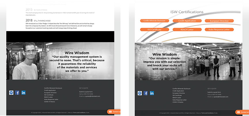 The challenge: Industrial Steel & Wire (ISW) is a no frills business. And their customers like it that way. ISW people work very hard to excel at service and their commitment is true. That’s admirable—but how do you capture honest, approachable and hard working in a website?